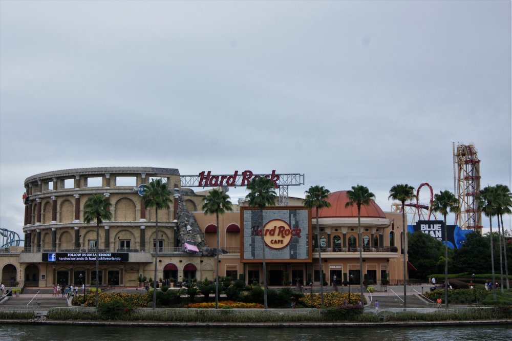 Ny dag - nye oplevelser. Vi havde håbet på et kald fra Lynn eller Frank så vi kunne mødes i byen, men det lykkedes kun lige at komme i audiens ved Frank en halv times tid på resortet. De havde åbenbart travlt - nå men pyt vi kunne også klar os selv. Vi tog vognen ind til downtown. Vi ville se Amway Center, hvor de hårde drenge spiller basket - desværre var arenaen lukket. Var havnet lige midt i Church Street Station, som tidligere var partyområdet - det så desværre meget dødt ud. Synes egentlig det var lidt skuffende, hvis det skulle være downtown Orlando - så var vi godt tilfredse med at bo hvor vi gjorde. Vi røg ud på den store vej og ville finde Universal - ikke fordi vi ville ind i parken, men verdens største Hard Rock Café lå derude. Vi fulgte bare skiltene og måtte til sidst slippe $15 for at parkere i et stort parkeringshus - jo der var styr på alle gæsterne. Det så meget spændende ud herude og der var faktisk meget gøgl at se på så det er absolut et besøg værd - også selvom man ikke vil ind i selve Universal-parken. Det stor runde Universal-skilt var der og igen en pæn stak souvenirboder. Vi ku' se lidt at rutchebanerne inde i parken, men det vi gik efter var Hard Rock Café. Stort og flot som det meste af USA. Disse caféer er så "fede" som vi skal besøge når muligheden byder sig. Vi tog vor frokost her - altid go' anretning i flotte lokaler og go' musik. En form for cult-sted, som helt klart kører til mine favoritter. Der skulle lige en t-shirt med hjem og en pose til LLB. Universal-området - et fint sted at besøge hvis man vil bruge en halv dag uden at betale en formue og få en god oplevelse. Aftensmad på Perkin's var igen en succes.