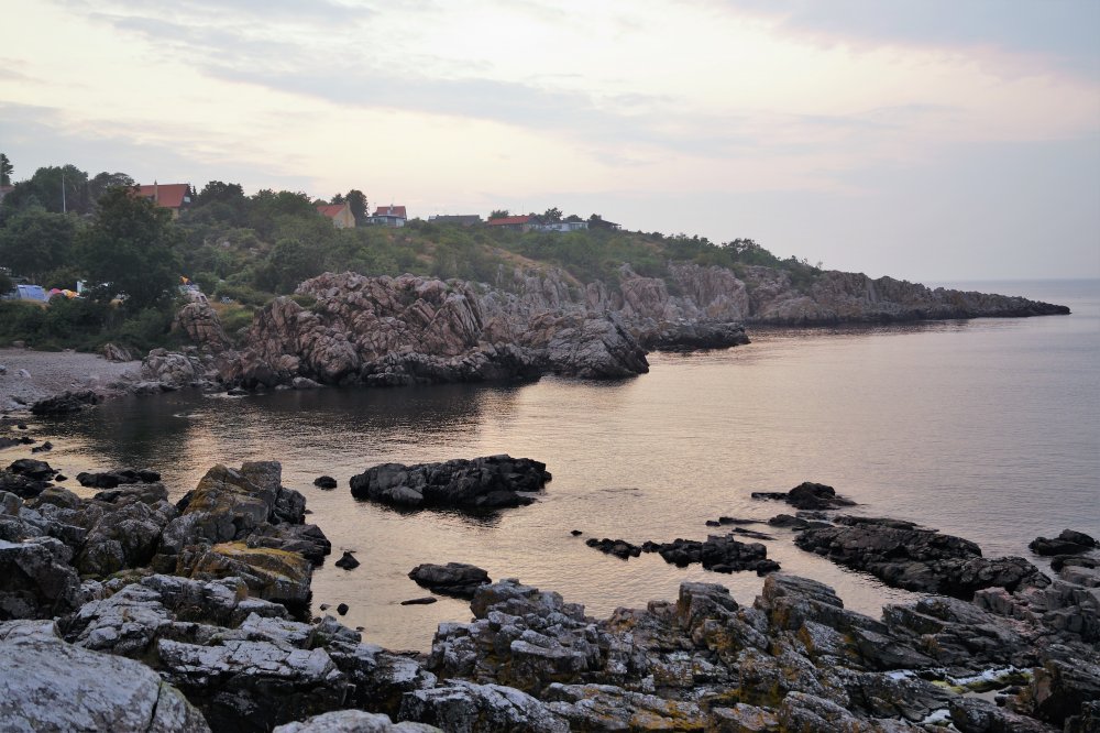 Efter en go' morgenmad startede vi ud mod Sverige. Fantastisk vejr - lige varmt nok måske. Over broen og sydpå mod vandet ved Trelleborg og så langs kysten østover. Havet var nærmest fladt idag så mange var på vandet mens andre var ude og lufte cabriolet'erne. Dem var det mange af. Sveriges sydligste punkt ved S... sku' vi da osse lige besøge. Færgehavnen i Ystad blev lige checket så vi var forberedte til senere. Frokosten blev på havnen i Simrishamn - rejefyldte rødspætter med pommes og en kold cola med dug på siderne. Herfra gik der skisme osse færger til Bornholm. Vi måtte lige forbi Ifö Sanitär i Bromölla og hilse på inden der var tid for at lede efter en campingplads - og helst en med udsigt. Hällevik skulle være et lækkert sted så det prøvede vi. Teltpladsen lå 50 meter fra havet så helt perfekt. Vi har jo cykler med så en aftentur i området er jo fedt inden en fortjent pizza blev kørt ned på pladsens lille cafe. En fin dag og en go' start på ferien.