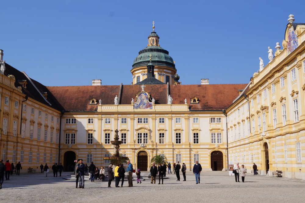 En god nats søvn i Wien og vi var klar til at køre tidlig - vi havde jo en lang tur til Bonn. Afgang ved 8-tiden og gennem byen til motorvejen i flot kørevejr. Lidt mere bakket end i Danmark - dog ikke bjerge. Fra vejen så vi pludselig slottet i Melk så vi svang lige forbi og gik en tur i byen og op på slottet. Fine sted. Enkelte tanke,spise pauser undervejs og over både Donau, Inn, Main og Rhinen på turen. Gennem Frankfurt og flyene over hovedet på os. Det sædvanlige vejarbejde i Tyskland sinkede vel os et par timer og regn og hagl hjalp heller ikke. Godt 21.00 efter 900 km og 13 timer undervejs landede vi i Bonn. Fik parkeret i p-kælderen og mødtes med Camilla og Kim på Roses til aftensmad. Herefter hjem i lejligheden, hvor vi skulle overnatte de næste par dage.
