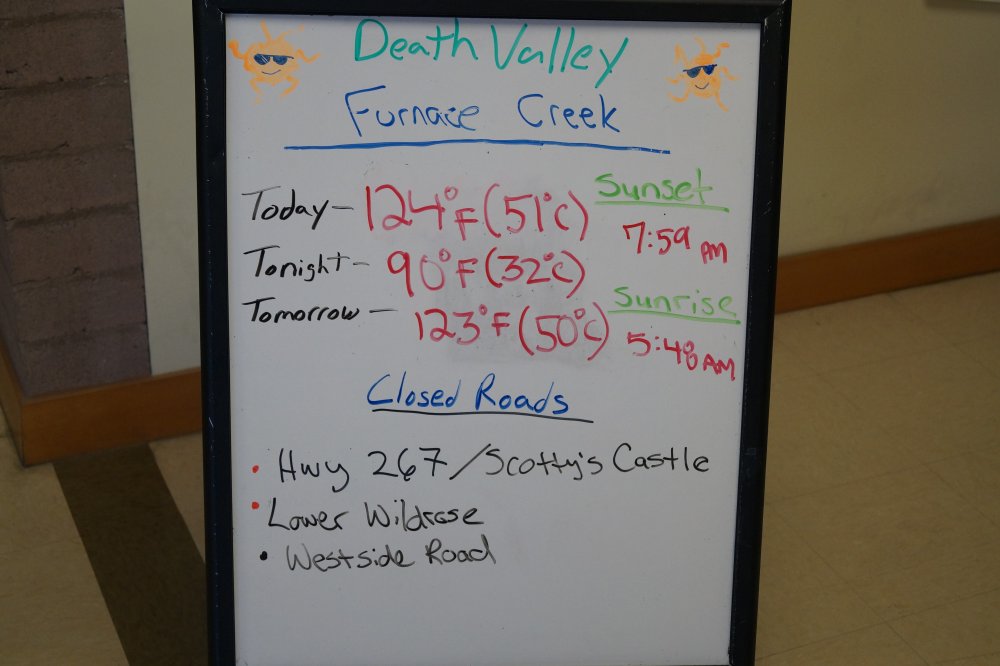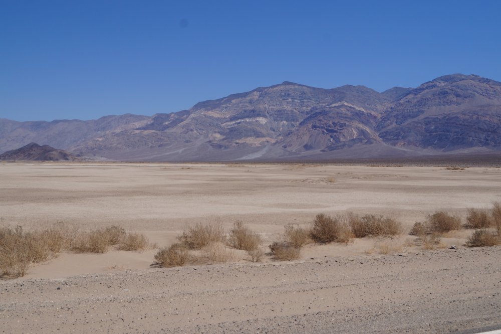 Sidste motel overnatning i Bishop og kursen blev sat mod Las Vegas hvor bilen sku' leveres tilbage. Dagens projekt var en tur gennem Death Valley. Vi tog tidlig afsted for at undgå den værste varme - vi blev snydt. Det var en lang tur og temperaturen steg langsomt. Utrolig øde og meget tørt overalt. Fotostop undervejs. Vi bevægede os op og ned i højderne og midtvejs var vi nede i nul. Enkelte boder undervejs hvor de solgte lidt souvenirs og benzin til overpris. Gjorde stop ved Zabriskie Point. Undervejs var temp. Oppe og vende ved 52 grader iflg bilen. Sanddyner og store saltsletter lignede. . Ude af parken og kurs mod Vegas, hvor vi afleverede bilen sidst på eftermiddagen. Det gik hurtigt og en taxi ind til hotel Planet Hollywood midt på the strip.. Vi fik værelse 709 - ganske fint værelse med udsigt væk fra the strip - nok godt nok med lidt ro her. Skulle lige en rundt fot at researche lidt på hotellet og på gaden. Masser af mennesker - masser af sjove typer. Det var ret vildt. Blev tilen pizza på en af de utallige restauranter. Lidt fotos af de fede steder sku' osse til. Som altid go' mad. De sagde det var verðns næststørste. Vi havde set efter. En koncert eller et show men der var ikke lige det rigtigevidaååg. Ellers bød aftenen på en tur op og ned så The Strip.