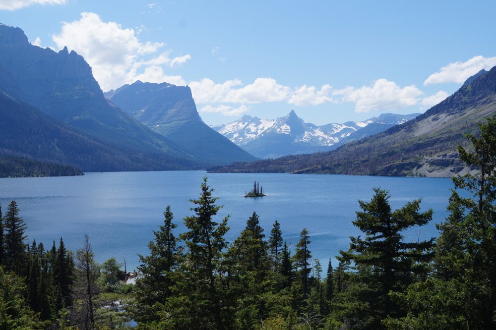 Efter en go' nats søvn i Helena sku' vi ha' sidste etape nordpå og vi havde et par timers kørsel gennem kuperet terræn inden vi nåede frem til Blackfeet indianernes reservat. Vi havde håbet at se indianerlandsbyer og andet indianerkultur, men det lignede stort set det vi havde oplevet undervejs herop. Enkelte tipi'er så vi men måske det kun var blikfang for os der kørte forbi. I St. Mary stod den på lækker frokost inden vi kørte forbi rangeren i skuret og ind i Glacier National Park. Fra øst indgangen havde vi nu 50 miles til West indgangen. Første stykke langs en af søerne var virkelig flot med bjerge overalt. Masser af fotostop undervejs. Midt i parken sku' vi over passet i 2000 meters højde. Pitstop og en gåtur op i sneen og en fed udsigt over de andre bjerge. I det fjerne spottede vi en bjørn og dens unge - fedt. Herfra jævnt nedad til floden og søen i bunden af dalen. Her så vi også et strejf af en bjørn i vejkanten - desværre fik vi ikke et billede. En fantastisk tur gennen parken. Lidt souvenirs og ellers mod Kalispell hvor indlogerede os på Blue and White Motel. Spiste på naborestauranten inden der var relax.