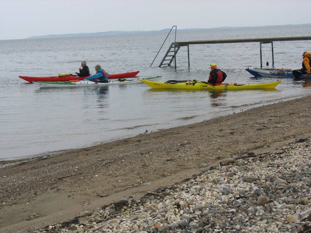 Og lige nede i vandkanten var der besøg fra disse kajakker